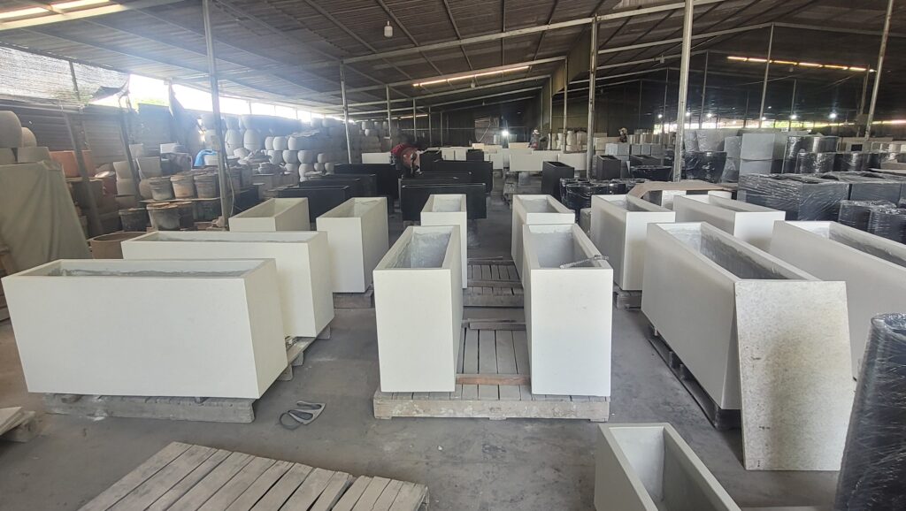 Standard lead time: 4–6 weeks for fiber cement and fiberglass planters after deposit confirmation.