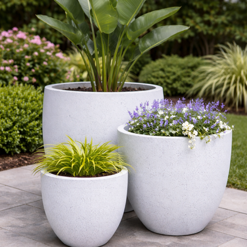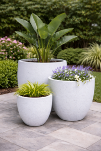 Our range includes fiber cement, fiberglass, and glazed ceramic planters in a wide variety of shapes, sizes, and finishes — from lightweight solutions for easy handling to premium decorative pieces for retail collections and landscaping projects.